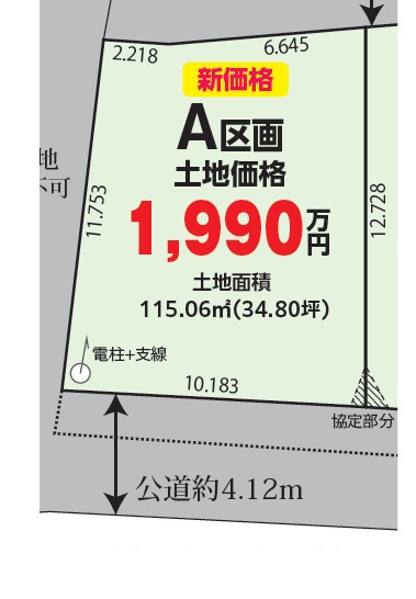 土地面積/115.06m²(34.81坪) 販売価格 1,990万円(税込) |