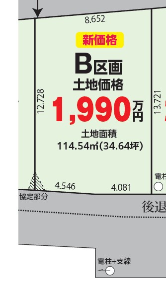 土地面積/114.54m²(34.65坪) 販売価格 1,990万円(税込) |