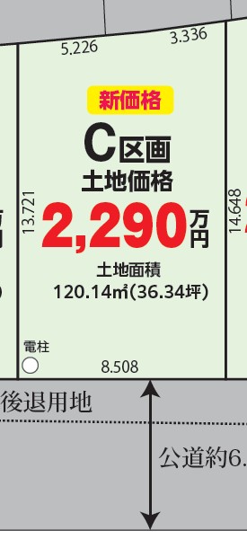 土地面積/120.14m²(36.34坪) 販売価格 2,290万円(税込) |