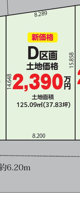 土地面積/125.09m²(37.84坪) 販売価格 2,390万円(税込) |