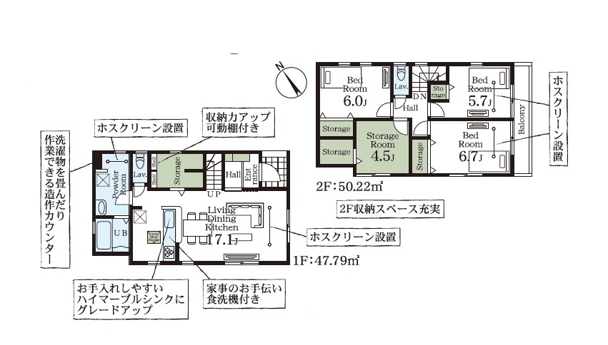 2階建て, 南向き, LDK15帖以上, 全居室フローリング, リビング階段, 全居室収納, ウォークインクローゼット, 納戸, 対面式キッチン, 食器洗乾燥機, 浄水器, 浴室乾燥機, シャワー付洗面化粧台, TV モニター付インターホン, スマートキー, 都市ガス, 本下水, 駐車2台可, 並列駐車, 整形地, 閑静な住宅地, 小学校徒歩10分以内, スーパー徒歩10分以内 |